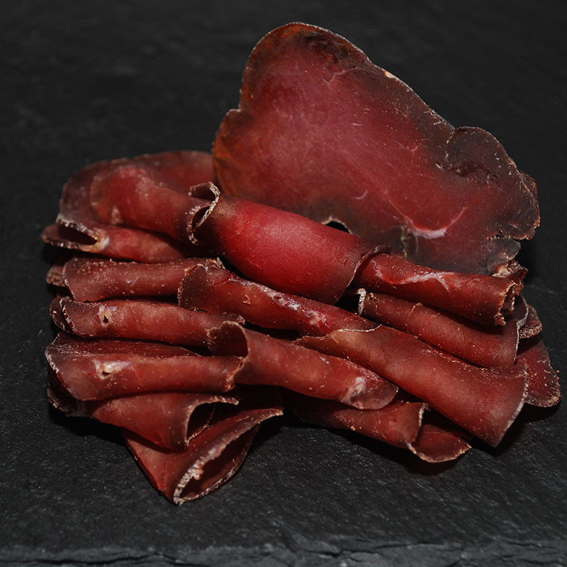Trockenfleisch, gut gereift und fein geräuchert.Eine Delitkatesse, die dem Mostbröckli und dem Bünderfleisch durchaus das Wasser reichen kann.